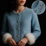 Détails Perlés Sublimes : Un col délicatement orné de perles et de strass apporte instantanément un éclat festif, éliminant le besoin de collier. Les boutons nacrés et dorés complètent cette esthétique luxueuse.
